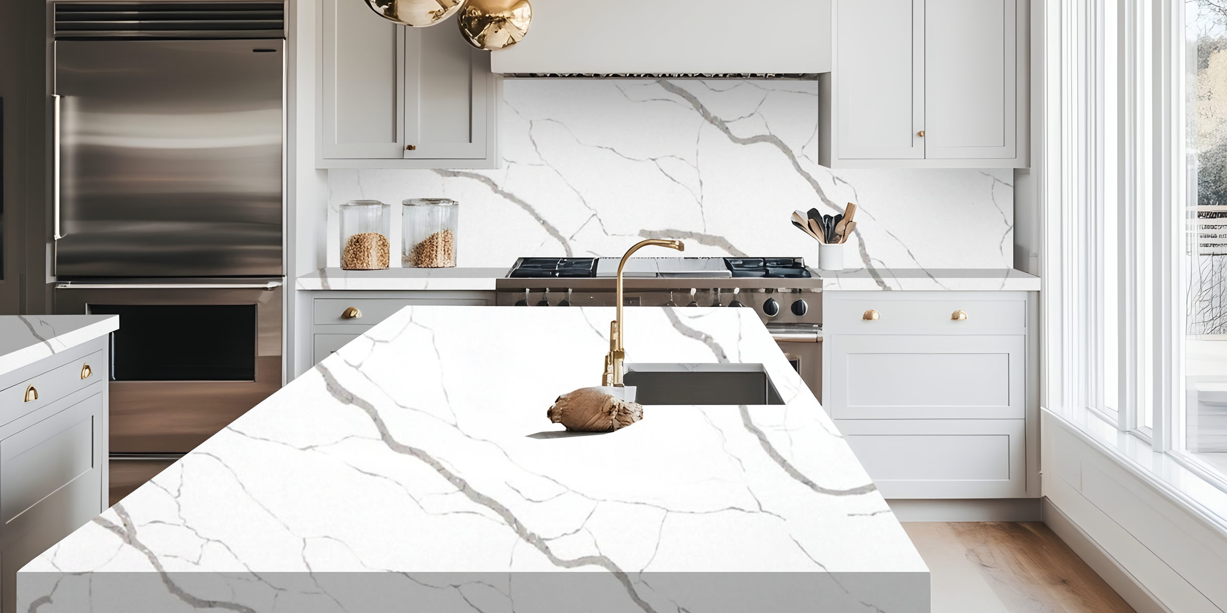 Quartz is non-porous and highly resistant to scratches, making it a perfect choice for busy kitchens and bathrooms. This ensures that your countertops will maintain their flawless surface for years to come.