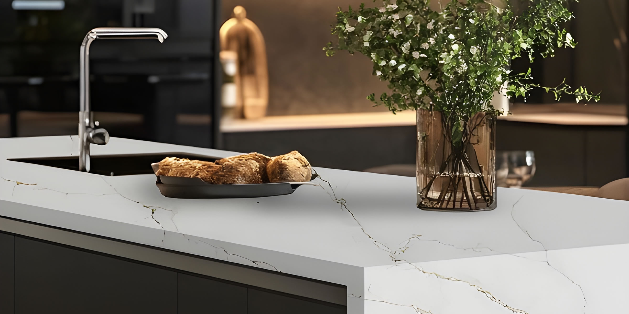 Quartz is non-porous and highly resistant to scratches, making it a perfect choice for busy kitchens and bathrooms. This ensures that your countertops will maintain their flawless surface for years to come.