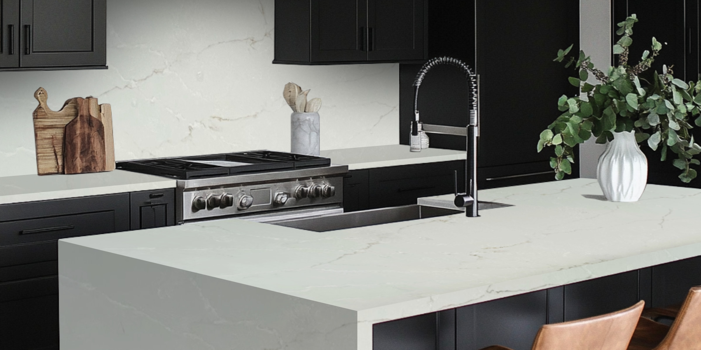 Engineered for strength, quartz is highly durable and resistant to chipping, cracks, and stains. It’s perfect for high-traffic areas, offering both form and function.